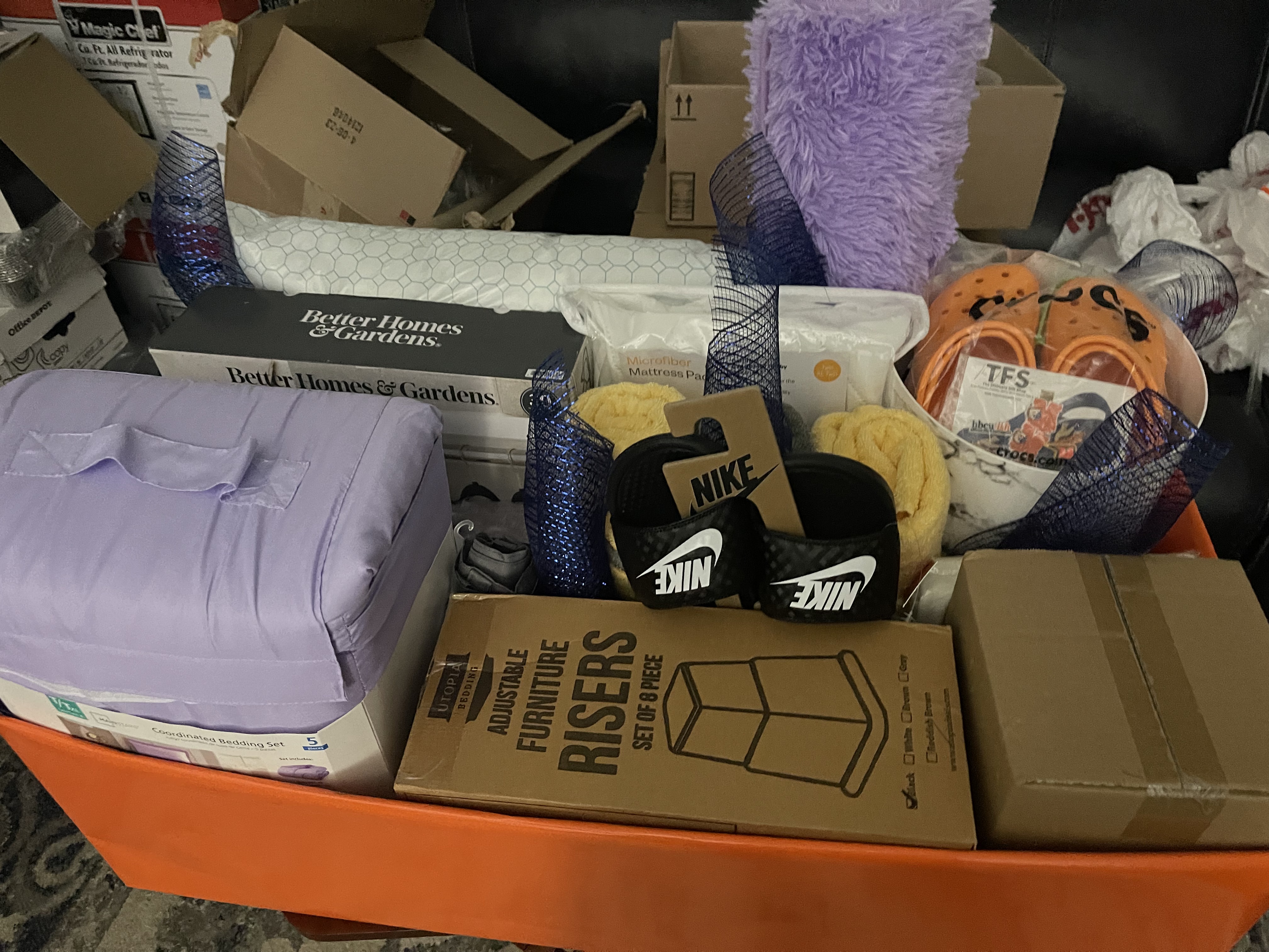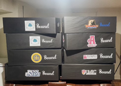 The timeline for the services for the 2024 – 2025 academic year is as follows. College Decision Day falls on May 1st, and on May 15th, Encouraging Hearts delivers dorm supplies to the high schools to prepare students for the year. The dorm supplies include sheets, towels, comforters, pillows, lamps, trash cans, under-bed storage, mattress covers, hangers, bed risers, shower shoes, iron, ironing board, and mirrors, among other items. They are delivered in a customized box that bears the name of the university the student is attending. During the weeks of fall and spring mid-terms care packages will be sent containing an encouragement card, snacks, and a gift card for a special treat. A monthly encouragement card will be sent for the months of September through May.